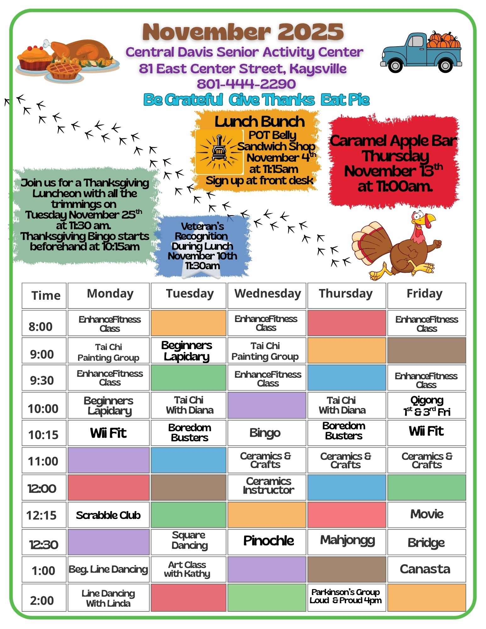Built in 1991, the Central Davis Senior Activity Center serves seniors in the Layton, Kaysville, Fruit Heights, Farmington, and Centerville areas. Central Davis serves hot meals and more than 120 home delivered meals each week day. We offer a variety of classes, trips, fun activities, volunteer opportunities, entertainment, and physical activity. Join us Monday through Friday from 8am to 5pm.
