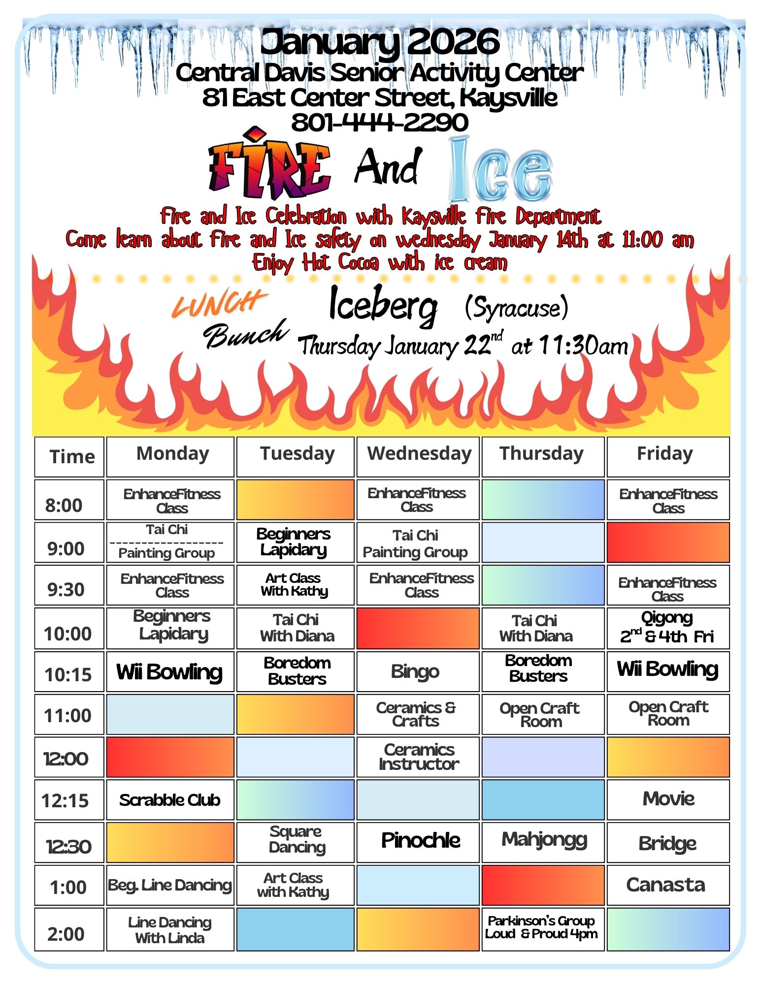 Built in 1991, the Central Davis Senior Activity Center serves seniors in the Layton, Kaysville, Fruit Heights, Farmington, and Centerville areas. Central Davis serves hot meals and more than 120 home delivered meals each week day. We offer a variety of classes, trips, fun activities, volunteer opportunities, entertainment, and physical activity. Join us Monday through Friday from 8am to 5pm.